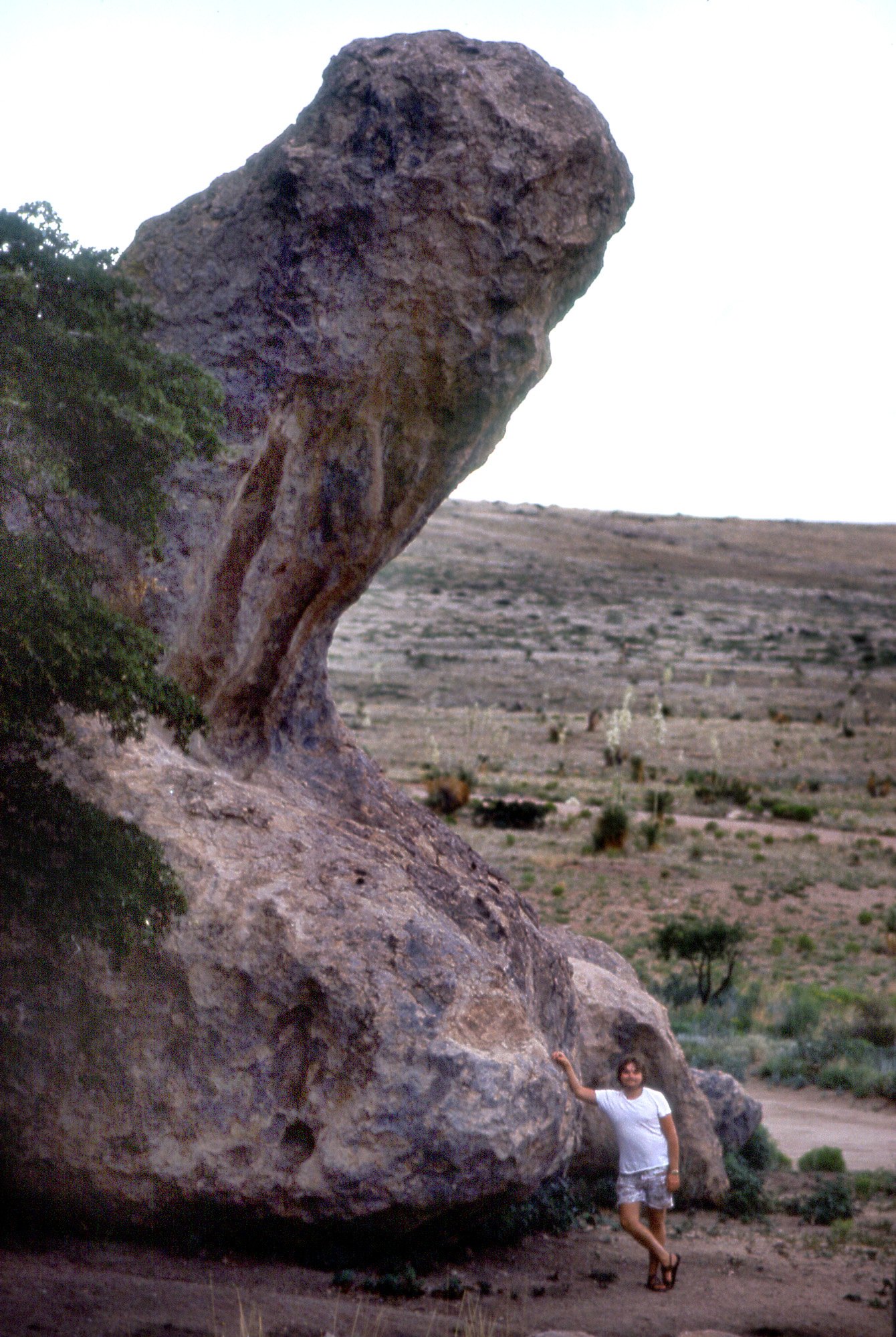 This State Park reminded me of some of the outdoor scenes from the old Lost in Space TV series, where the Robinson’s wondered among boulders, always exploring and looking over their shoulder for the next alien to pop out and surprise them. This State Park is a little off of the beaten path, but well worth the trip to explore this unique Park with Stonehenge sized rocks huddled within a valley. The rock formations at the park are so unique that they are only known to exist in six other places in the world. Visitors who have imaginations may see the rock formations that look like a small city, complete with houses, chimneys, courtyards, and streets. The park encompasses a one square mile area in the Chihuahuan desert region of southwestern New Mexico at an elevation of 5,200 feet. The Mimbreno Indians settled in the area about 750 – 1250 AD. Pottery, arrowheads, and other artifacts show evidence of prehistoric Indians in the area. The Park was created on March 20, 1953. This legislation provided for the lease of 640 acres of land from the New Mexico State Land Office for the purpose of a State Park and recreation area.